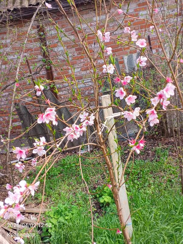 У меня всего 7 деревьев персика, но ни один из них подобно этому, не цветёт: это "самосев" , над тем местом за летним туалетом, растёт высокий орех, видимо, ворона принесла этот плод из чужого сада и села на ветку ореха полакомиться, косточка упала вниз, я заметил это деревце давно и всячески его "пестовал": вот, теперь посмотрим, что там получится.. Это молодой персик первый раз обещает показать свои плоды: | |
